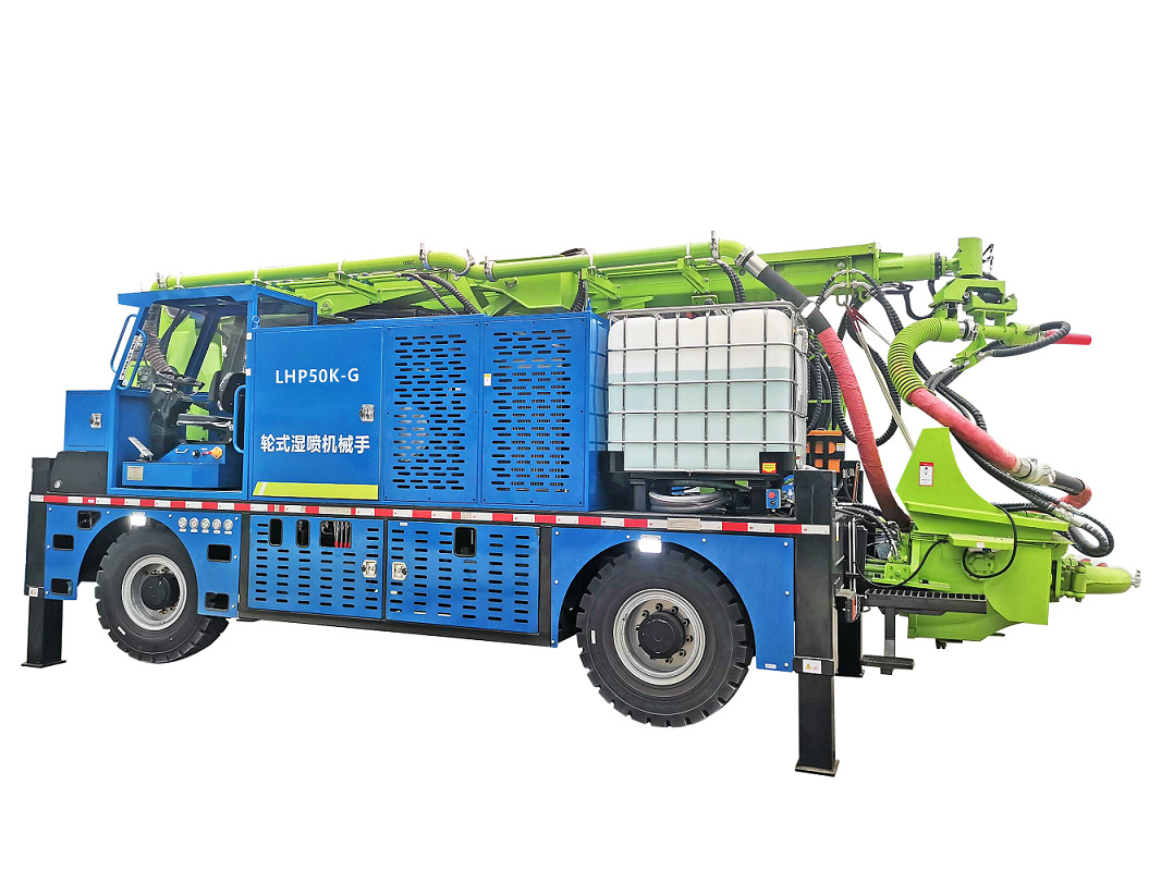 適用于公路鐵路隧道、地下洞庫(kù)、水利水電和抽水蓄能電站的隧道錨噴支護(hù)作業(yè)。LHP50K-G輪式濕噴機(jī)械手是一款綜合國(guó)內(nèi)隧道初支混凝土噴漿工藝及高海拔施工工況研發(fā)升級(jí)的一款專用設(shè)備,最大噴射方量達(dá)到50m3/h,廣泛應(yīng)用于隧道工程、水利工程、市政工程、道路橋梁工程等。該設(shè)備具有噴射方量大、不易堵管、回彈低、性能穩(wěn)定可靠等特點(diǎn),既適用于全斷面,也適用于半斷面 和多階梯開挖。