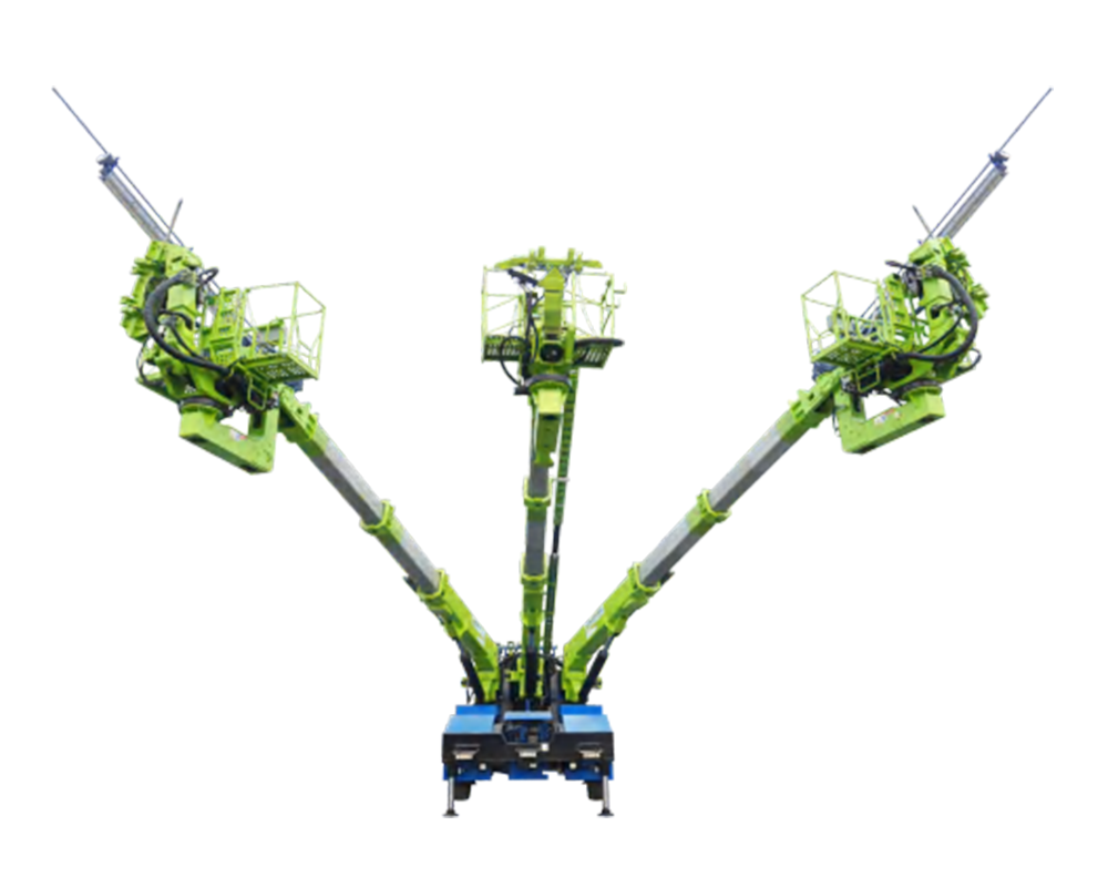 LZG413A智能鉆拱一體化臺車是一款滿足隧道全斷面和臺階法施工需求的雙巖鉆孔、立拱一體化臺車整機采用剛性一體車架工程底盤,兩臂三抓手兩吊籃結構,