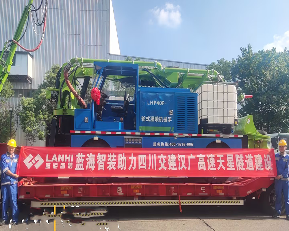 藍海智裝LCHP40C車載濕噴機械手助力中鐵十五局劍黎高速劉家?guī)X隧道建設,在減少人力成本,減少施工風險,提高效率的同時,實現(xiàn)隧道立拱的標準化和工廠化.需