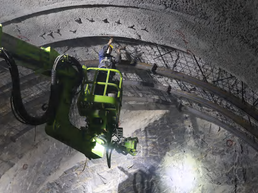 整個初支工序只需5人 (拱架安裝以及系統錨桿作業3人、噴漿操作手2人)、6小時可以完成;傳統作業至少需12人、12小時才可完成每年節省人工成本至少幾十萬。