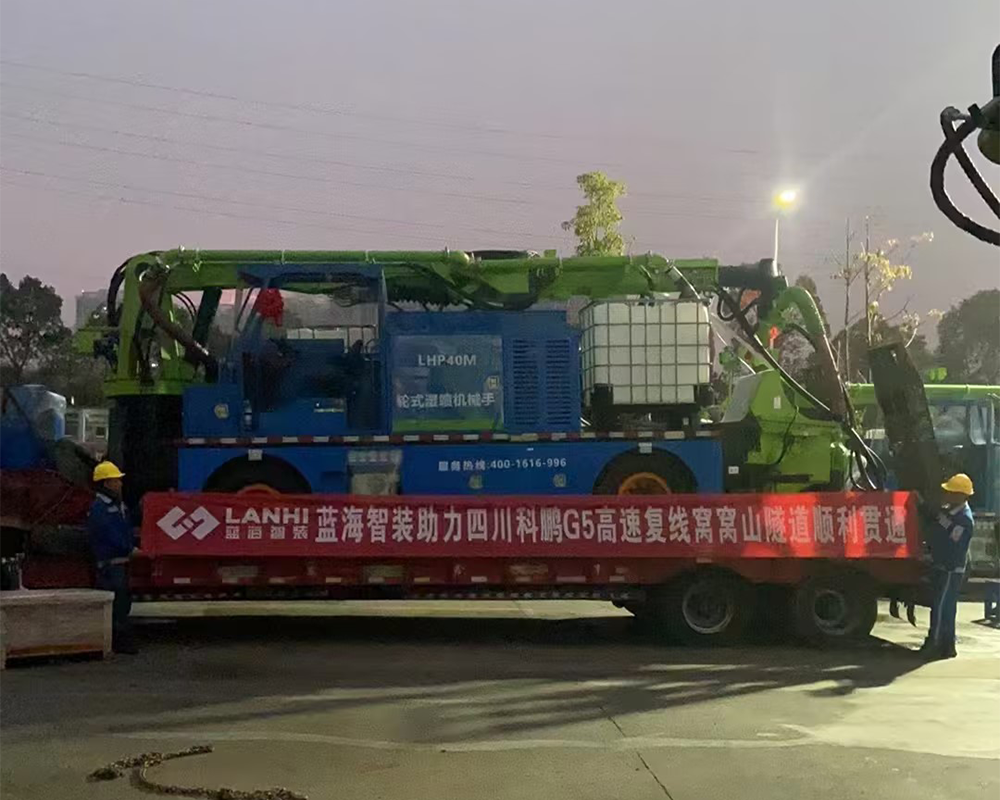 藍海智裝LCHP40C車載濕噴機械手助力中鐵十五局劍黎高速劉家嶺隧道建設,在減少人力成本,減少施工風險,提高效率的同時,實現隧道立拱的標準化和工廠化.需