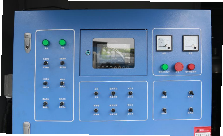 3、以工業控制器為核心的控制系統,控制器具有IP67高防護等級,以及具備CAN總線通訊(專為汽車設計抗干擾能力強,大數據交互延時低,擴展性強 );控制器直接輸出電磁閥和檢測反饋電流達到比傳統PLC更為可靠和穩定的控制。整個電氣系統具備過載,短路,缺相,過欠壓保護等功能;配備一個7寸人機交互面板,可直觀的觀看和設置系統運行參數,并具備IO監控功能;搭載一個GPS+GPRS物聯網模塊,可實現遠程云平臺監控、操作、管理。